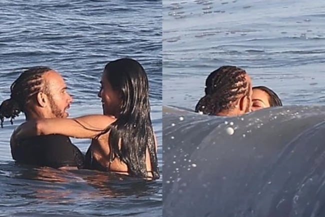 Kim Kardashian and Lewis Hamilton were seen enjoying a relaxed day by the ocean, where things quickly turned affectionate as they embraced and shared a passionate kiss in the water.
