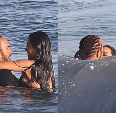 The couple, who confirmed their relationship earlier this year, appeared completely at ease as they laughed, splashed through the waves, and stayed close throughout the outing. Onlookers described the moment as natural and carefree, with both stars seemingly unbothered by the attention their presence drew.