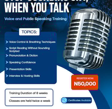 The training is tailored for students, professionals, entrepreneurs, aspiring media personalities, and anyone looking to improve how they speak and present themselves.