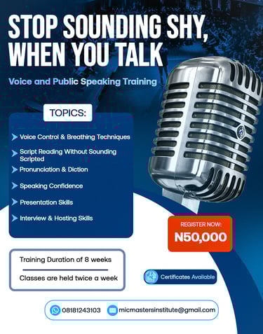 To help individuals build strong communication skills, Mic Masters Institute is championing a comprehensive Voice and Public Speaking Training designed to transform shy speakers into confident and impactful communicators.
